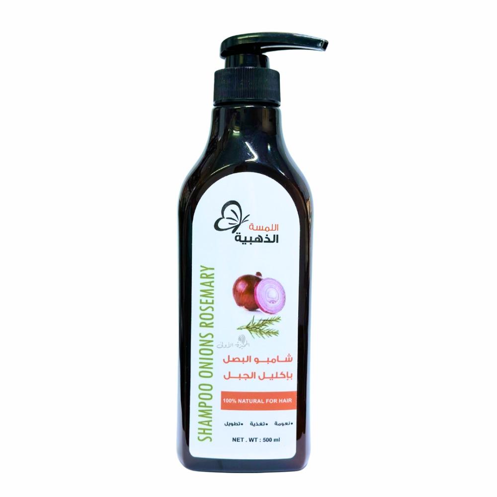 - استعيدي صحة شعرك وجماله مع شامبو البصل بإكليل الجبل من اللمسة الذهبية – لشعر قوي، صحي، ومليء بالحيوية.
